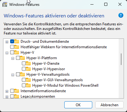 obwohl das Feature Hyper-V in den Windows-Features nicht aktiv ist.